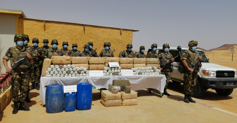 وفي إطار “عمليات محاربة الجريمة المنظمة ومواصلة للجهود الحثيثة الهادفة إلى التصدي لآفة الاتجار بالمخدرات ببلادنا أوقفت مفارز مشتركة للجيش الوطني الشعبي بالتنسيق مع مختلف مصالح الأمن بإقليمي الناحيتين العسكريتين الثانية والثالثة 8 تجار مخدرات وأحبطت محاولات إدخال كميات من المخدرات عبر الحدود مع المغرب تقدر بـ 167 كيلوغرام من الكيف المعالج وضبطت بندقية (1) رشاشة من نوع FMPK و661 طلقة، في حين تم توقيف 23 تاجر مخدرات آخرين وضبط 56594 قرصا مهلوسا خلال عمليات مختلفة عبر النواحي العسكرية”.